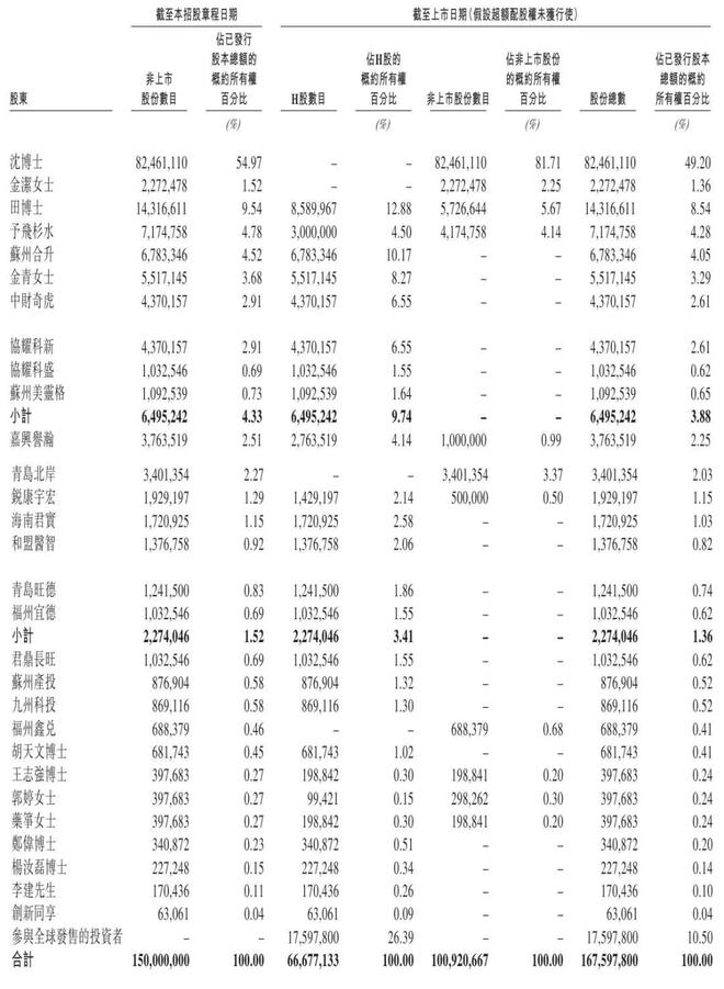 IPO后,沈敬山博士持股49.2%,金洁女士持股1.36%,田博士持股8.54%,予飞杉水持股4.28%,苏州合升持股4.05%,金青女士持股3.29%,中财奇虎、协耀科新分别持股为2.61%;