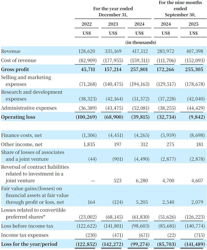Klook在2025年前9个月营收为4.07亿美元,较上年同期的2.84亿美元增长43.3%;毛利为2.55亿美元,上年同期的毛利为1.72亿美元;运营亏损为984万美元,上年同期的运营亏损为3273万美元;净亏损为1.41亿美元,上年同期的净亏损为8570万美元。