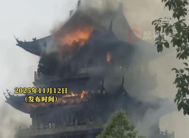 11月12日,江苏苏州张家港市凤凰镇永庆寺突发火情。网友发布视频显示,一栋古代式样的建筑物几乎被火吞噬。