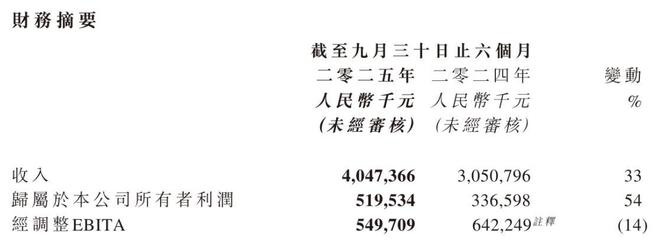 截至2025年9月30日的半年,大麦娱乐归属于公司所有者的净利为5.20亿元,较上年同期的3.37亿元增长54%;经调整EBITA为5.5亿元。