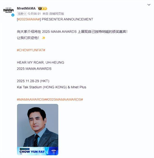 11月18日,话题“周润发官宣出席MAMA”冲上热搜,引发关注。