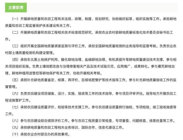 主要职责公布(图/耕地质量和农田工程监督保护中心官网)