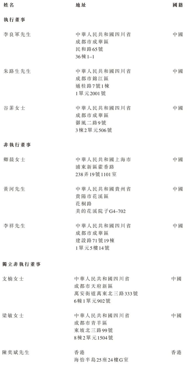 卡诺普执行董事李良军、朱路生、谷菲女士;非执行董事分别为卿晨女士、黄河、李祥;独立非执行董事分别为支楠女士、梁敏女士、陈奕斌。