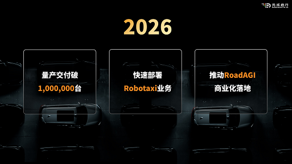 2026年,元戎启行将继续聚焦量产车辅助驾驶、Robotaxi、RoadAGI三大核心业务。其中,量产车辅助驾驶业务将继续扩大合作车型与客户体系,力争实现累计交付突破一百万辆;Robotaxi业务将加速推动商业化落地,打造真正具备商业复制能力的Robotaxi体系;在RoadAGI业务方面,元戎启行将持续推动商业化落地进程,赋能移动智能体在末端配送等关键场景的实际应用。