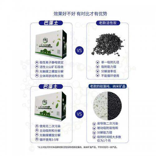 叶广泥和活性炭不一样,活性炭只能吸附,用一段时间以后吸附会饱和,叶广泥不仅仅是吸附,是吸附后可以分解有害物质,不会再释放,不需要暴晒,可以持久分解,使用3年。
