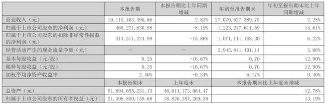 第三季营收101亿 扣非后净利降16%