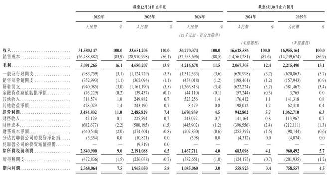 东山精密2025年上半年营收为169.55亿元,较上年同期的166.29亿元增长2%;经营利润为10.63亿元,上年同期的经营利润为9.43亿元;经营利润率为6.3%;期内利润为7.59亿元,上年同期的期内利润为5.59亿元,期内利润率为4.5%。