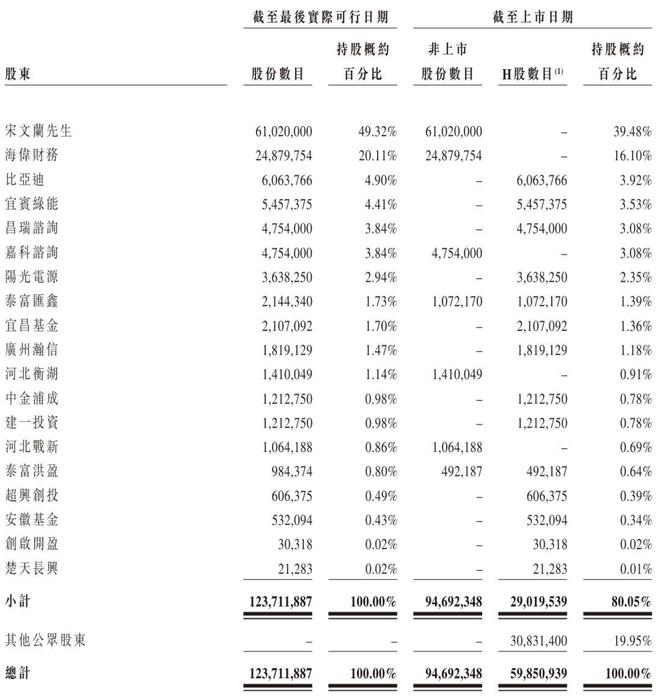 IPO后,宋文兰持股为39.48%,海伟财务持股为16.1%,比亚迪持股为3.92%,宜昌绿能持股为3.53%,昌瑞谘询、嘉科谘询分别持股为3.08%,阳光电源持股为2.35%,泰富汇鑫持股为1.39%,宜昌基金持股为1.36%;