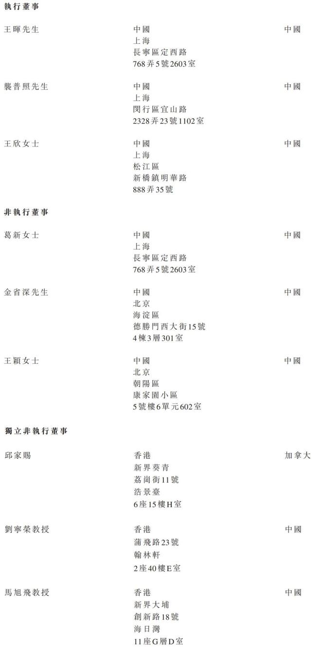 卓越睿新执行董事分别为王晖、袭普照、王欣女士;非执行董事分别为葛新女士、金省深、王颖女士;独立非执行董事分别为邱家赐、刘宁荣教授、马旭飞教授。