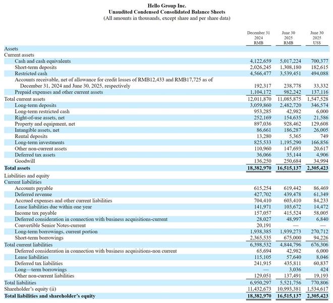 截至2025年6月30日,挚文集团持有的总资产为165.15亿元(约23.05亿美元),上年同期为183.83亿元;其中,现金及现金等价物为50.17亿元(约7亿美元),短期存款为13.08亿元(约1.83亿美元),受限制现金为35.39亿元(约4.94亿美元)。