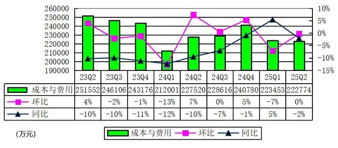 挚文集团2025年第二季度成本与费用为22.28亿元(约3.11亿美元),较上年同期的22.75亿元下降2.1%。