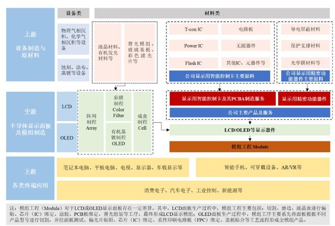 报告期内,公司主要产品系 LCD、OLED 等新型半导体显示面板专用智能控制卡及其 PCBA 制造服务,并围绕半导体显示面板产业为核心应用领域配套显示用精密功能器件类产品,终端应用主要为平板电脑、笔记本电脑、显示器、中大尺寸电视、手机、智能穿戴等消费电子领域。