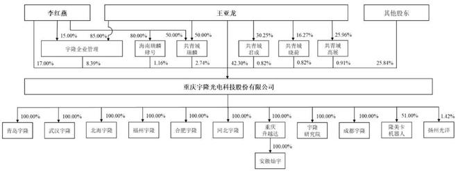 宇隆科技实际控制人为王亚龙、李红燕夫妇。截至本招股说明书签署日,王亚龙、李红燕夫妇直接持有公司59.31%股权,并通过宇隆企业管理、共青城瑞麟、共青城君成、共青城晓荷、共青城高展、海南瑞麟肆号控制公司14.86%股权,二人合计控制公司74.16%股权。