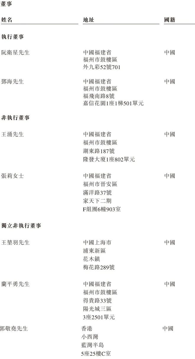 米多多执行董事分别为阮卫星、邓海,非执行董事分别为王涌、张莉女士,独立非执行董事分别为王堃羽、兰平勇、郭敬尧。