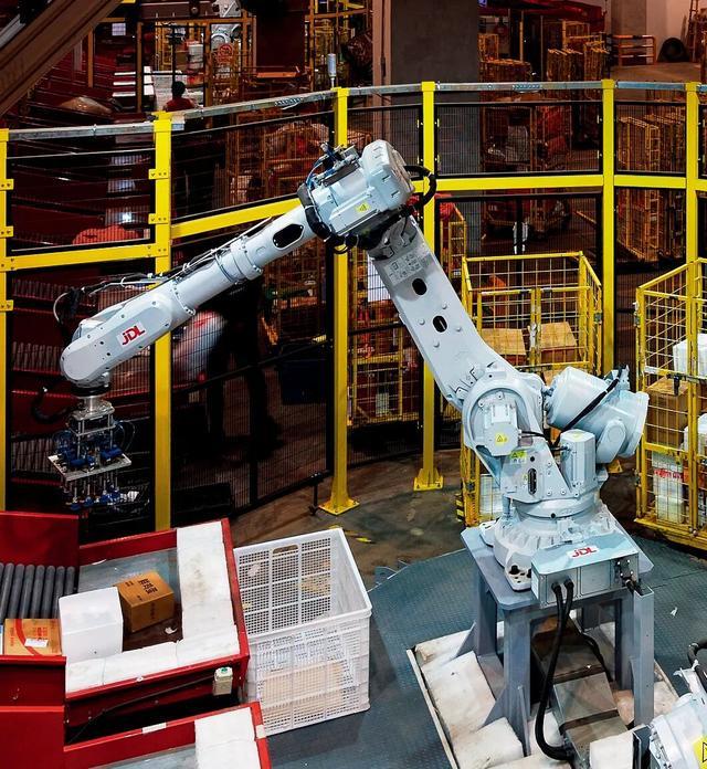 分拣工作是一个体力活,最多时,工人一天要码放上千件包裹。今年,一部分工作开始被机器接管。14台几人高的机械臂“异狼”立在格口之间,伸展、抓取、放置一个包裹,平均只用15秒。单台机械臂单日分拣抵得上一名分拣员的饱和工作量。更重要的是,这些机械臂不知疲倦,可以将工人从高强度的体力劳动中解放出来。