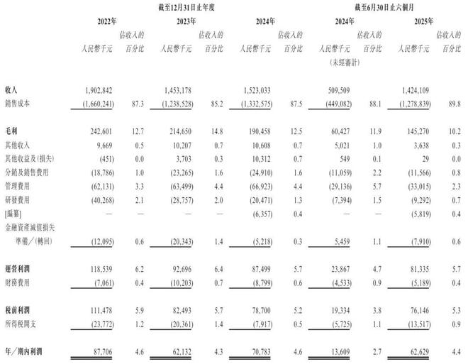 招股书显示,美联股份2022年、2023年、2024年营收分别为19亿、14.5亿、15.23亿;毛利分别为2.4亿、2.15亿、1.9亿;毛利率分别为12.7%、14.8%、12.5%;期内利润分别为8771万元、6213万元、7078万元。