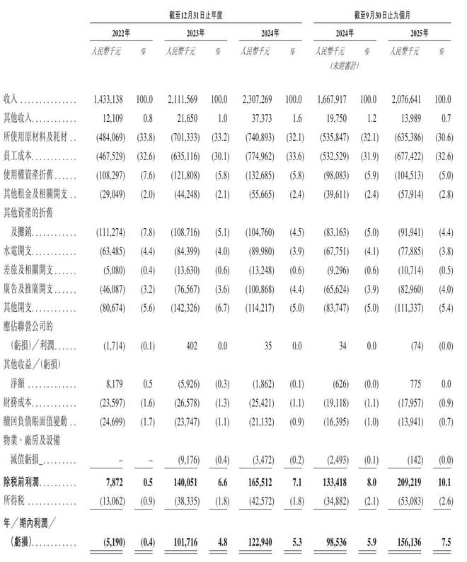 巴奴毛肚火锅2022年、2023年、2024年经调整净利分别为4146万元、1.44亿、1.68亿;2025年前9个月经调整净利2.35亿元。