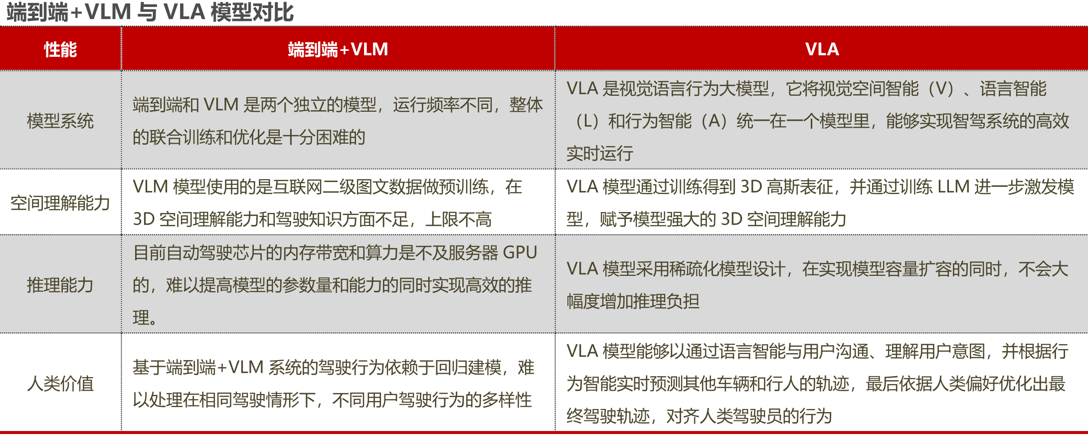 与此同时,VLA正在成为重要的一环。VLA模型拥有更高的场景推理能力与泛化能力,对于智能辅助驾驶技术的演进意义重大。从长远来看,在从L2级辅助驾驶向L4级自动驾驶的技术跃迁过程中,VLA有望成为关键跳板。