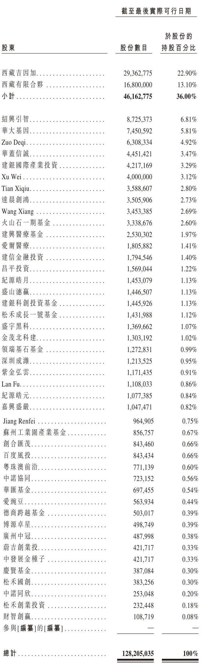 绍兴引智持股为6.81%,华大基因持股为5.81%,Zuo Deqi持股为4.92%,华盖信诚持股为3.47%,建银国际产业投资持股为3.29%,Xu Wei持股为3.12%;