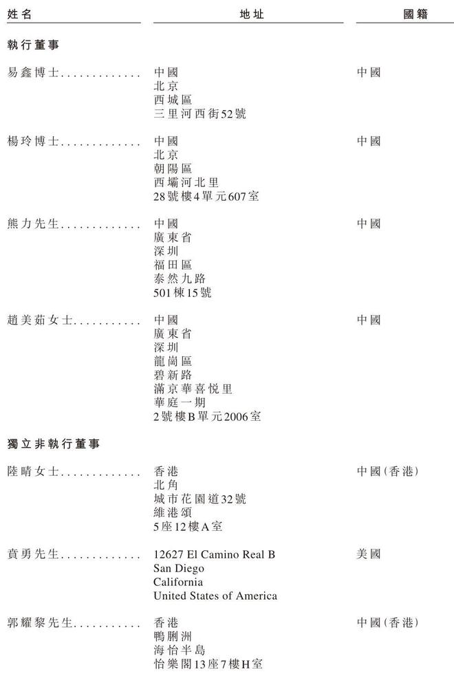 吉因加执行董事分别为易鑫博士、杨玲博士、熊力、赵美茹女士;独立非执行董事分别为陆晴女士、贲勇、郭耀黎。