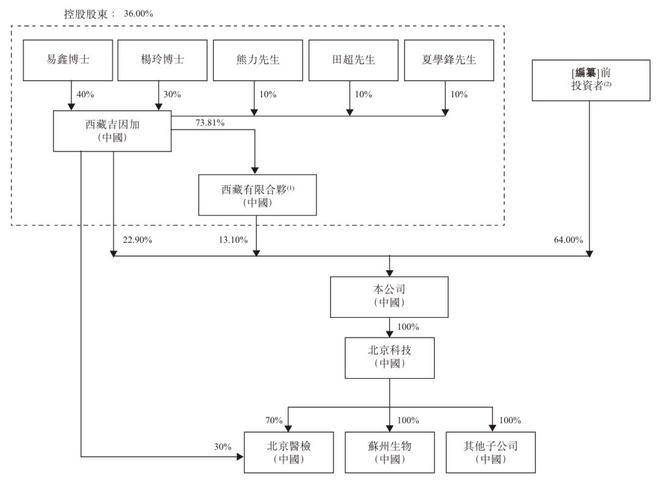 吉因加股东包括华大基因、爱尔医疗、纪源资本、华盖资本、达晨、昌平投资、松禾创业等。