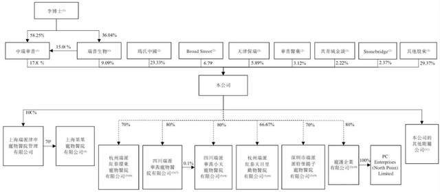 截至最后实际可行日期,中瑞供应链由瑞普生物持有56.31%的股权;瑞派宠物医院持有30%的股权;及其他独立股东合共持有13.69%的股权。