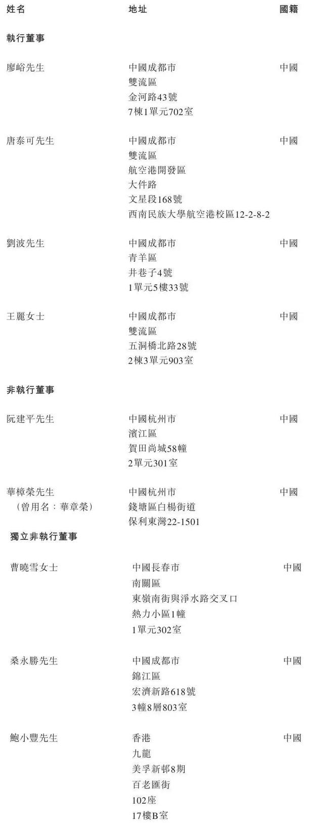诺比侃执行董事分别为廖峪、唐泰可、刘波、王丽女士,非执行董事分别为阮建平、华樟荣(曾用名:华章荣),独立非执行董事分别为曹晓雪女士、桑永胜、鲍小丰。
