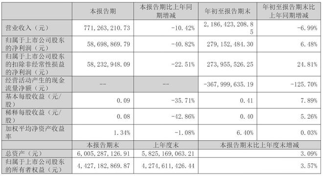宇信科技2025年第三季营收7.71亿元,同比下降10.42%;净利为5870万元,同比下降40.82%;扣非后净利为5823万元,同比下降22.51%。