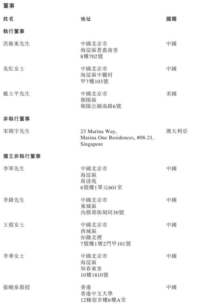 宇信科技执行董事分别为洪卫东、吴红女士、戴士平;非执行董事为宋开宇,独立非执行董事分别为李军、李锋、王霞女士、李华女士、张晓泉教授。