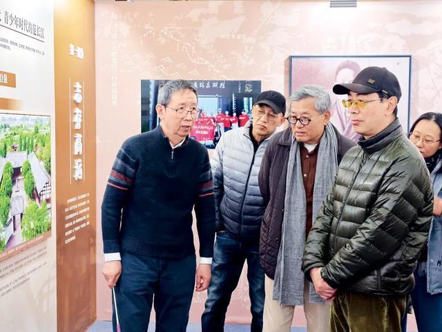 2025年11月17日,“范长江西北考察暨红军长征胜利到达陕北九十周年纪念展”现场,范长江之子范东升(左一)向中新社原社长章新新(左三)、中新社特稿中心原主任王丹鹰(左四)等介绍展览内容。摄影/本刊记者 胡默达