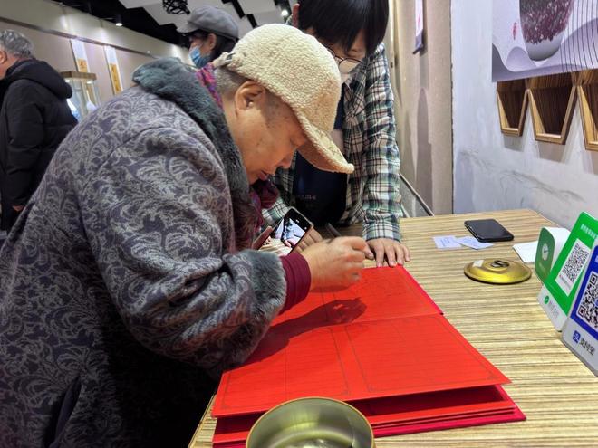 一位市民正在购买毕玉奇的作品。