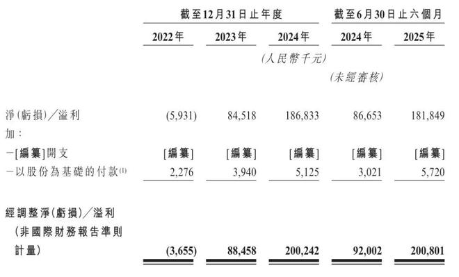 林清轩2022年、2023年、2024年经调整净利分别为-366万元、8846万元、2亿元;2025年上半年经调整净利为2亿元,上年同期为9200万元。
