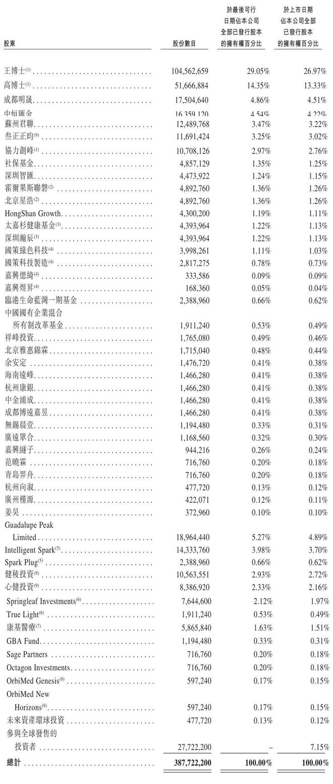 Spark Plug持股为0.62%,健稜投资持股为2.72%,心健投资持股为2.16%,Springleaf Investments持股为1.97%,True Light持股为0.49%,康基医疗持股为1.51%,GBA Fund持股为0.31%,Sage Partners、Octagon Investments分别持股为0.18%,OrbiMed Genesis、OrbiMed New Horizons分别持股为0.15%,未来资产环球投资持股为0.12%。