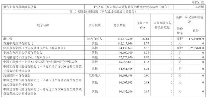 截至2025年9月30日,虞仁荣持股为27.4%,香港中央结算有限公司持股为11.77%,绍兴市韦豪股权投资基金合伙企业(有限合伙)持股为6.15%,宁波东方理工大学教育基金会持股为3.37%,青岛融通民和投资中心(有限合伙)持股为1.85%;
