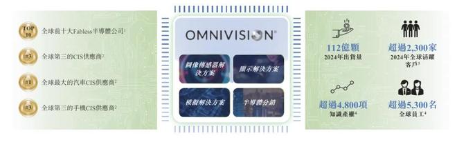 据介绍,豪威集团是一家Fabless半导体设计公司,集团研发中心与业务网络遍布全球,2024年出货量超过110亿颗。