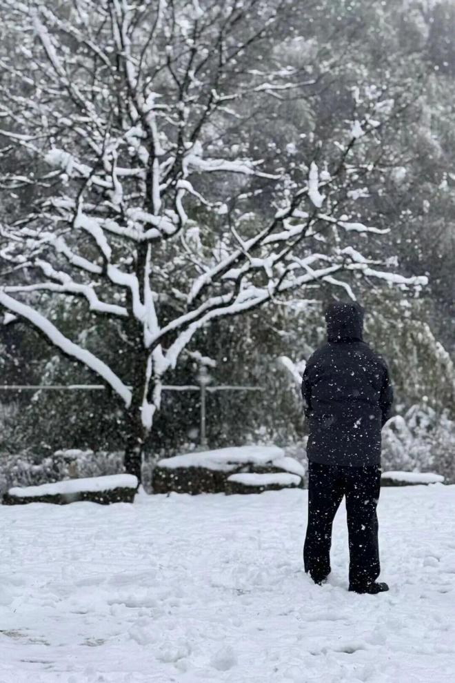 今天凌晨1点多,临安区清凉峰镇浙川村古道雅居的民宿主程先生正在门口等客人,突然看到天空飘起雪来,不一会儿就变成了漫天飞雪,忍不住发了个“见证2026年杭州第一场雪”的朋友圈。