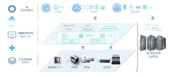 通过整合自主研发的基于GPGPU的硬件及专有的BIRENSUPA软件平台,壁仞科技的解决方案支持从云端到边缘的广泛的AI模型训练与推理应用。