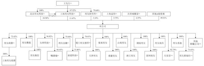 用友网络董事长王文京控制公司41.59%股权。