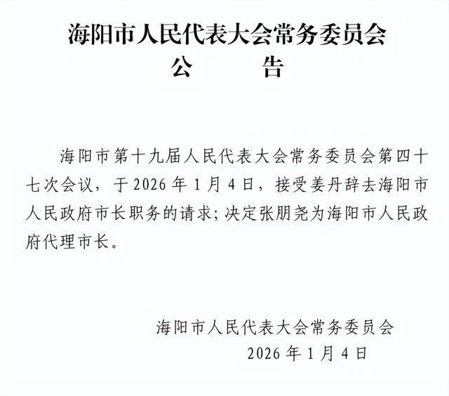 张朋尧担任海阳市代理市长职务 访客 2026-01-05 15:00:50 75600 抢沙发 默认 张朋尧已担任海阳市代理市长一职,他将在这一职位上负责主持海阳市政府的日常工作,并致力于推动城市的发展与进步,张朋尧的具体职责和表现值得期待和关注,他的上任将为海阳市带来新的发展机遇。 来源:海阳人大 文章版权及转载声明 作者:访客本文地址:https://cbern.net.cn/post/6631.html发布于 2026-01-05 15:00:50文章转载或复制请以超链接形式并注明出处雅虎财经 海报 阅读 QQ 分享 微博分享 微信分享 分享 上一篇中方呼吁,立即释放委内瑞拉总统马杜罗夫妇,停止颠覆政权行动 下一篇小米硬盘数据恢复失败,旅行博主遭遇素材丢失危机,客服回应无助 中方呼吁,立即释放委内瑞拉总统马杜罗夫妇,停止颠覆政权行动上一篇 小米硬盘数据恢复失败,旅行博主遭遇素材丢失危机,客服回应无助下一篇 相关推荐 沪深两市成交额突破3万亿大关 2026-01-12 北京本周六冷空气来袭,山区小雪降临,气温骤降至-12℃ 2026-01-12 小米卢伟冰回应离职传闻,今日正常上班 2026-01-12 国际油价与金银价格飙升背后的原因揭秘 2026-01-12 北京提高产检报销标准,封顶线提升至10000元,超过3000也能报销 2026-01-12 苏莱传射建功助力罗马完胜萨索洛 2026-01-11 足总杯惊现冷门,水晶宫遭非职业联赛球队淘汰 2026-01-11 李方慧勇夺美国阿斯本站自由式滑雪U型场地世界杯金牌 2026-01-11 发表评论取消回复 快捷回复: 评论列表 (暂无评论,75600人围观)参与讨论 还没有评论,来说两句吧...