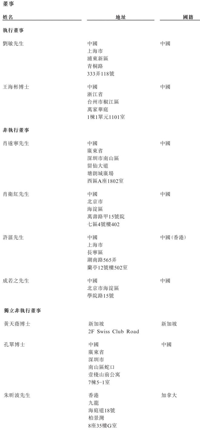 博锐生物执行董事分别为刘敏、王海彬博士,非执行董事分别为肖遂宁、肖卫红、许湛、成若之;独立非执行董事分别为黄天荫博士、孔单博士、朱昕波。