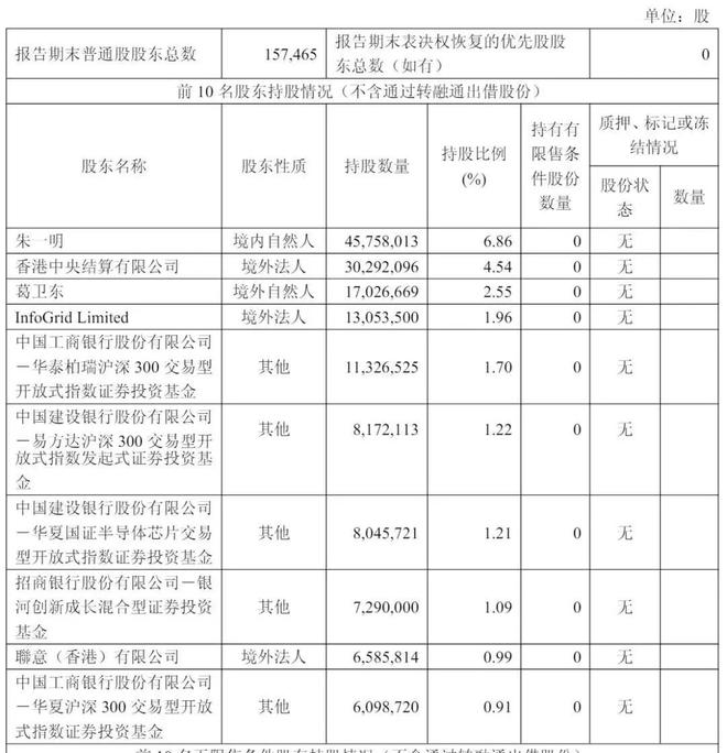 InfoGrid持股为1.96%,中国工商银行股份有限公司-华泰柏瑞沪深300交易型开放式指数证券投资基金持股为1.7%;中国建设银行股份有限公司-易方达沪深 300 交易型开放式指数发起式证券投资基金持股为1.22%;