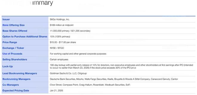 加密货币托管初创企业BitGo(股票代码:“BTGO”)日前递交招股书,准备2026年1月22日在纽交所上市。