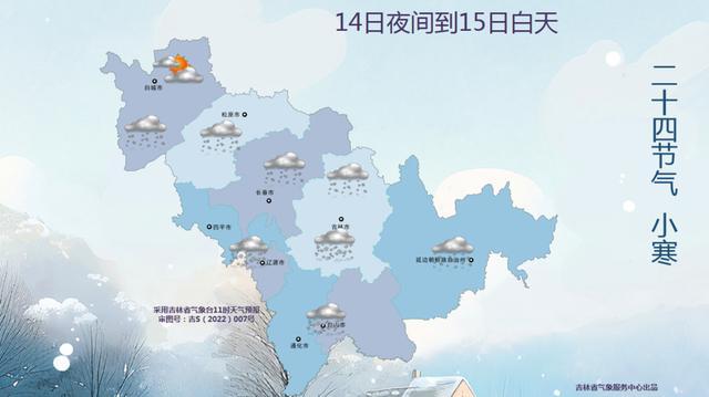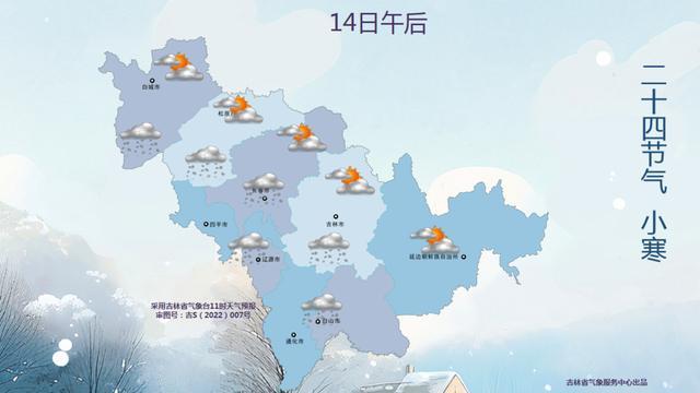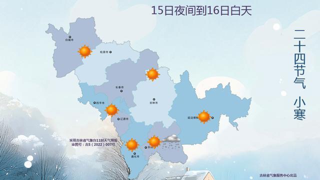 今天午后,全省晴转多云,白城南部、松原南部、长春南部、四平、辽源、吉林南部、通化、白山、长白山保护开发区有小雪。