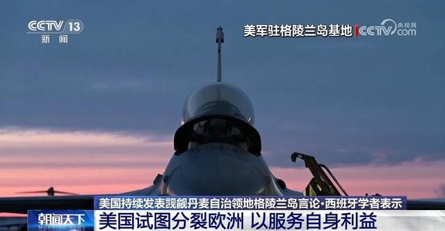 央视网消息:对于美国近来频繁发表觊觎丹麦自治领地格陵兰岛的言论,西班牙国际关系学者哈维尔·拉波斯日前对总台记者表示,他无法理解美国政府对格陵兰岛归属问题的态度,他认为美方做法不可接受,美国在刻意制造矛盾、分裂欧洲来为自身利益服务。