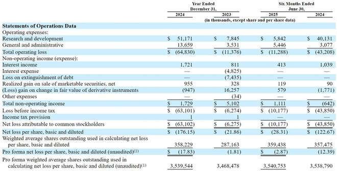LB Pharmaceuticals在2025年上半年运营亏损为1129万美元,上年同期的运营亏损为4321万美元;归属于普通股股东的净亏损为1018万美元,上年同期的归属于普通股股东的净亏损为4385万美元。