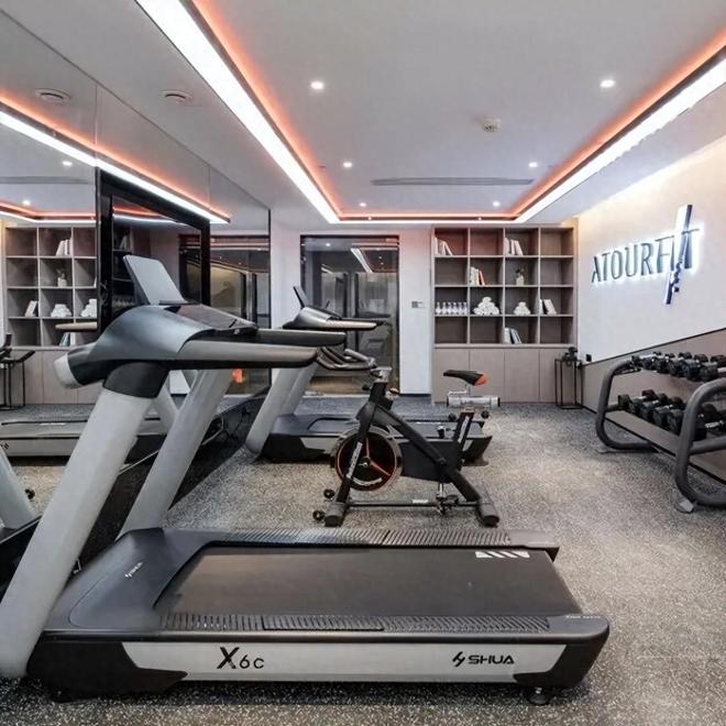 即使是官方发布的健身房图片,面积也不算大|图源:亚朵旗下公众号@几木里