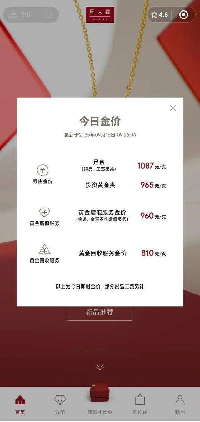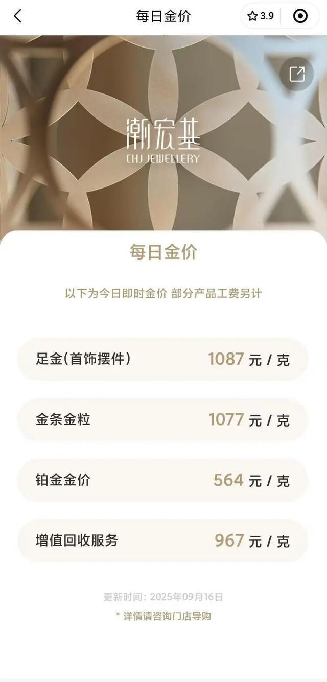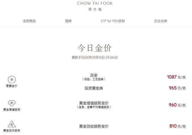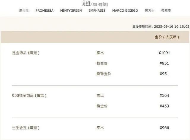 与此同时,国内金饰品牌价格也随之上涨,部分品牌涨至年内最高。中新经纬查询发现,16日,周生生金饰价格为1091元/克,为年内最高,较前一日上涨17元;老庙黄金为1087元/克,为年内最高,单日上涨13元;老凤祥为1086元/克,为年内最高,单日上涨12元;周大福为1087元/克,单日上涨9元(上海区域)。