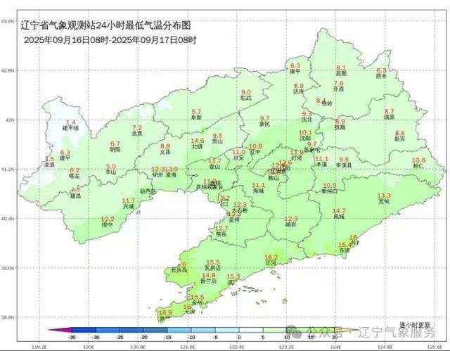 辽宁今早气温降至最低点,出现低至1.4℃和1.5℃的低温天气,预计未来几天,气温将逐渐回升,但仍需注意保暖,请关注天气预报,做好防寒保暖措施,摘要字数控制在合理范围内,简明扼要地概括了辽宁的低温天气情况及其未来趋势。