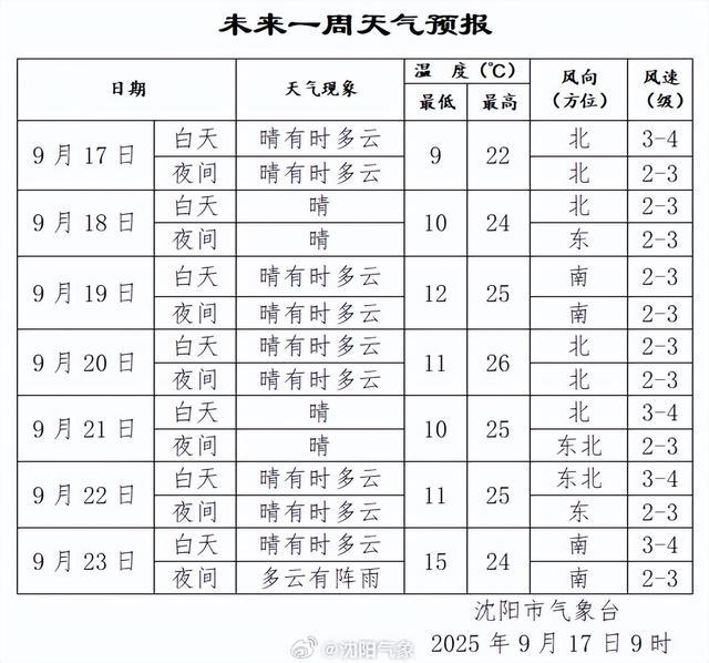 据沈阳市气象台