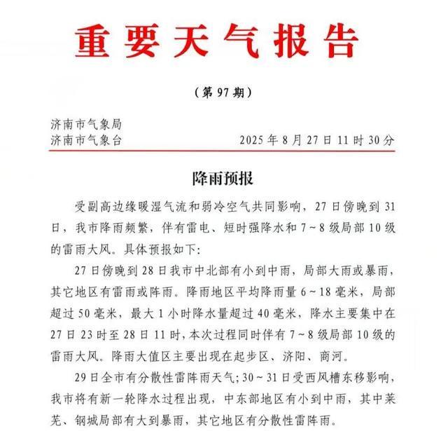 济南市气象台发布重要天气报告